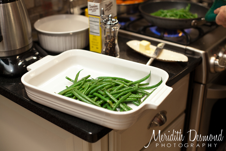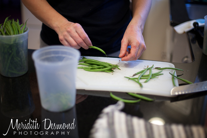 Chopping and blanching the string beans: