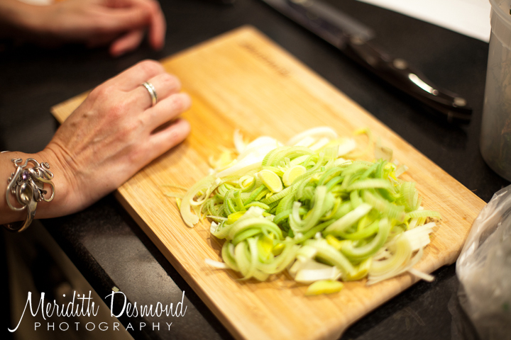 Chris took a lot of the photos below- he did a great job too! Here I am chopping leeks for the risotto.