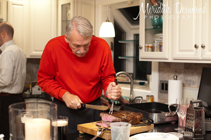 My Dad slicing the steak: