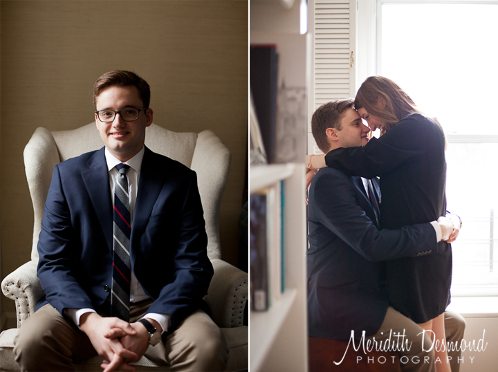 Since there was some snow on the group we starting the morning staying warm and them cozying up together inside Andrew’s apartment. The window lighting was beautiful and we made use of the classic colors and furniture throughout his space.
