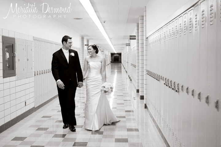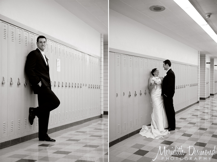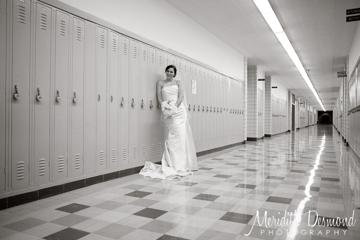 I worked with Nicole of Photography by Nicole Marie on this beautiful wedding. Kate and Erik met back in high school and Kate works there now as a teacher so we were able to roam the halls and take some photos inside near all the lockers. A fun and different location that brought a very personal touch to their wedding images. Enjoy!