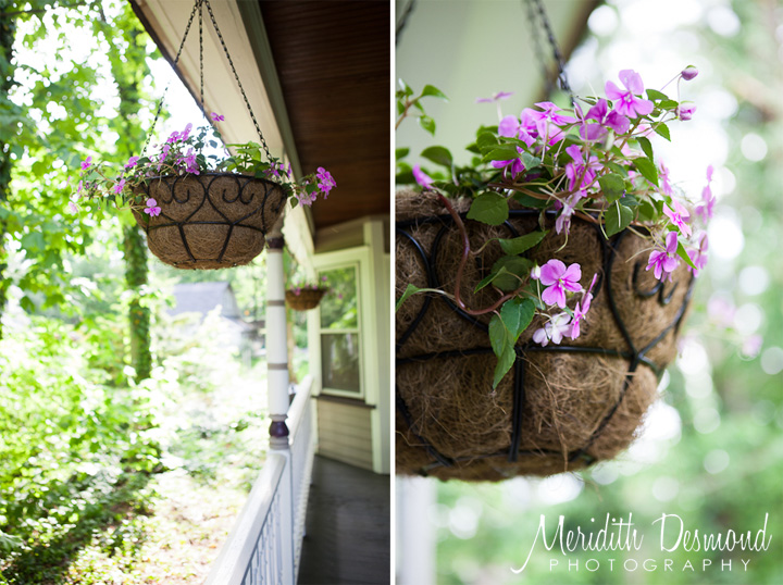 I LOVE our front porch- it makes me smile with the hanging baskets all planted now with fun flowers and the rocking chairs my parents gave us for Christmas this past year. Hoping the flowers live this year- ha! Last year they dried out in a minute, I watered them every day but all the flowers died, not to mention they were not shade flowers last year, so they didn’t last. This year I lined the baskets with plastic bags, cut some holes for drainage planted inpatiens(a type that grow over the pot and hang in a nice lilac color!), sweet potato vine(love the lime green tone!) and another white flower called Abunda Giant White Bacopa(which may need more sun that it will actually get in this spot but they looked so pretty at the nursery so I had to get them) and so far so good. I’m hoping they grow in all nice and full- I will post more pics then!