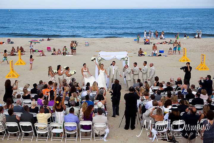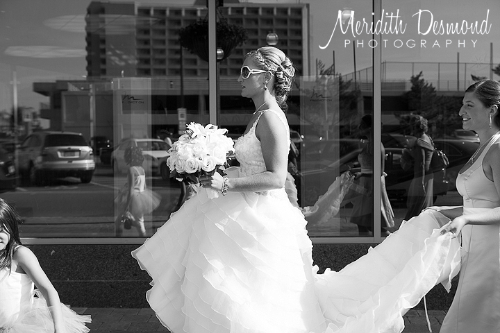 When the bride shows up in a rainbow tutu(matching with the flower girls) to her get hair and makeup done you know it’s going to be a fun day.  We started at Bungalow Hotel for some getting ready shots.  I didn’t even know that there was a hotel at Pier Village and I’ve been there so many times!  This hotel lobby was modern and fun which made for some great photos before the ceremony.  I walked up to Pier House with the bride and her girls.  Zahranna looked radiant in her dress and Dior sunglasses ready to walk barefoot down the boardwalk and into the sand to stand up with her future husband Matt.  It couldn’t have been any nicer outside as they said their vows on the beach in Pier Village in front of their guests and 500 beach-goers who happened to watch the ceremony that afternoon.  These two are so in love with each other, the photos just speak for themselves.  Enjoy.